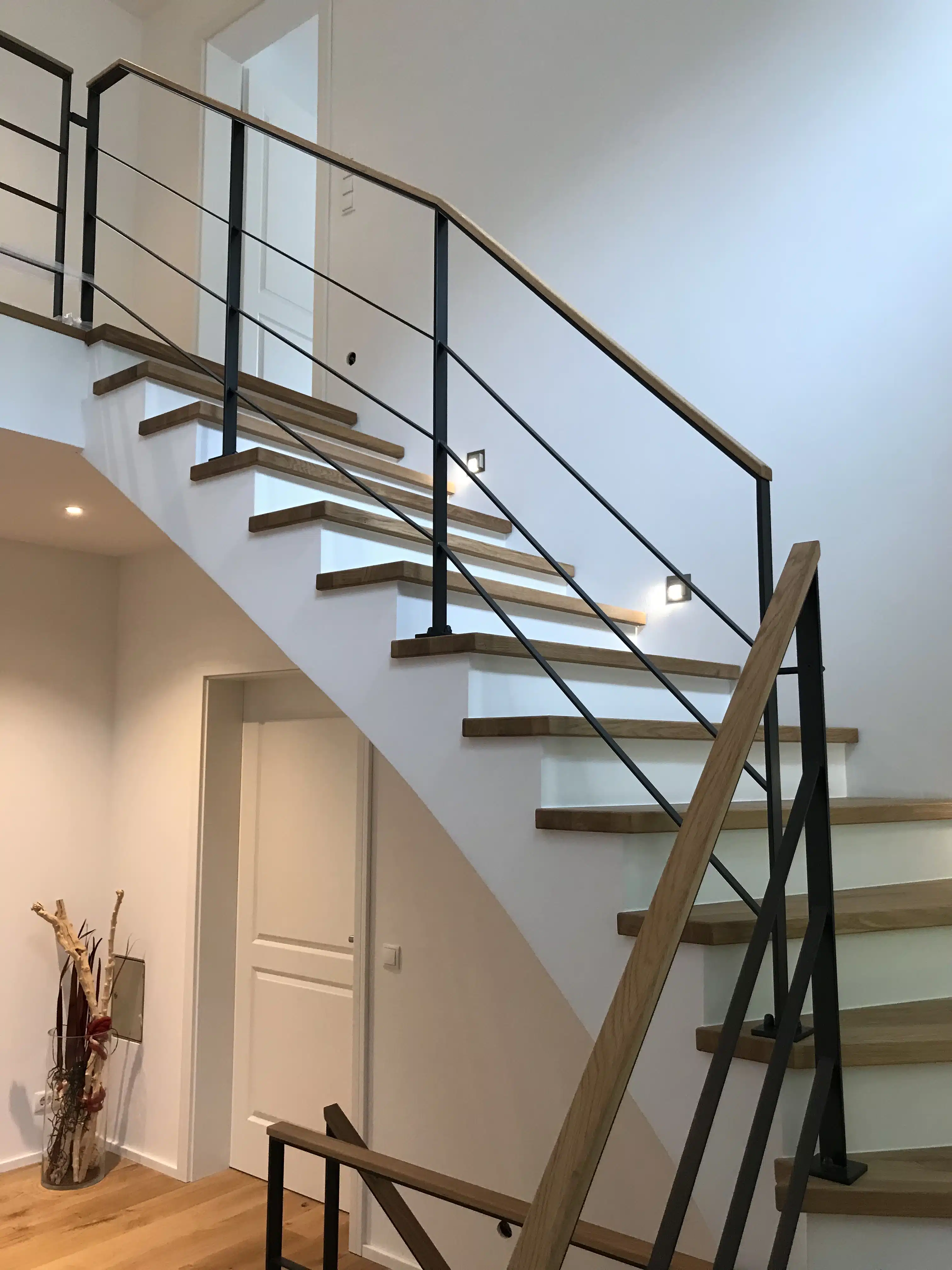 Pour vos intérieurs : escaliers en tous genres (suspendus, autoporteurs, métalliques, classiques, hélicoïdaux…), habillage de marches, garde-corps, passerelles, paliers.